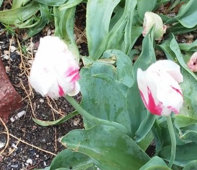 The tulips have their heads bowed in thankfulness for the rain quenches their thirst. The grass is turning greener right before my eyes.