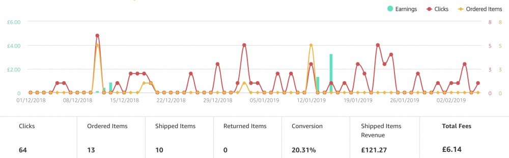 - 38 Blog posts so far (just under a quarter of them have an affiliate link in them)