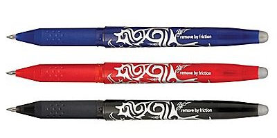 The Pilot Frixion Ball Point Erasable Gel Pens are pens that we should be concerned about. It is easy to remove information that was written by this pen by applying heat to the written word.