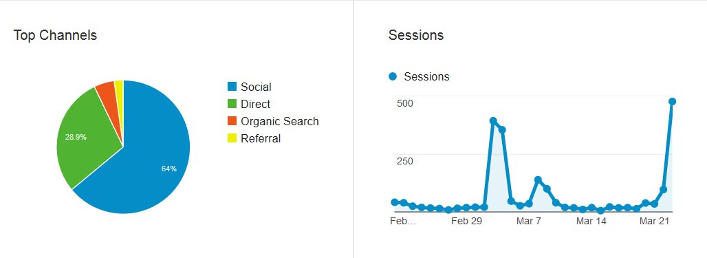 The first spike in the Google Analytics was when I announced on my website and social media I am closing my store and that I am just going to blog. The second spike is yesterday and today sharing some Youtube videos and some new pages on my website with what promotional packages I am offering.