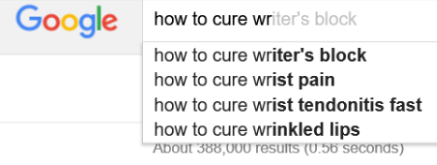 Just go to the Google 'Search' bar and simply start typing in some keywords or phrases related to your topic or niche. In addition to the obvious keywords, you will be surprised at how many related ideas will pop up: