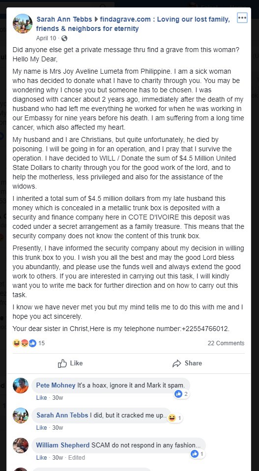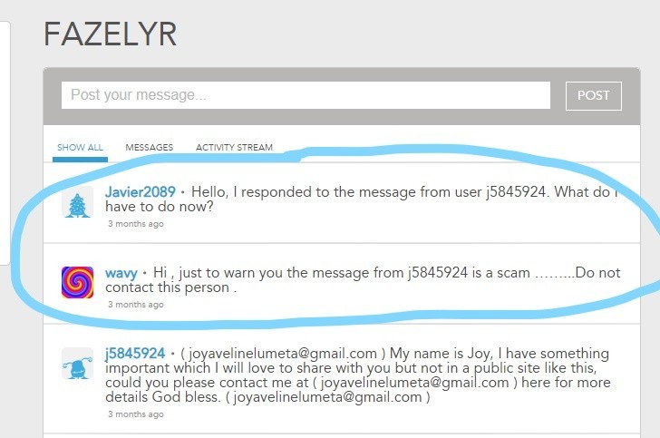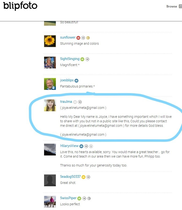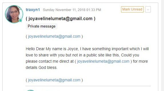 This person has already a victim who is giving warning to everyone.