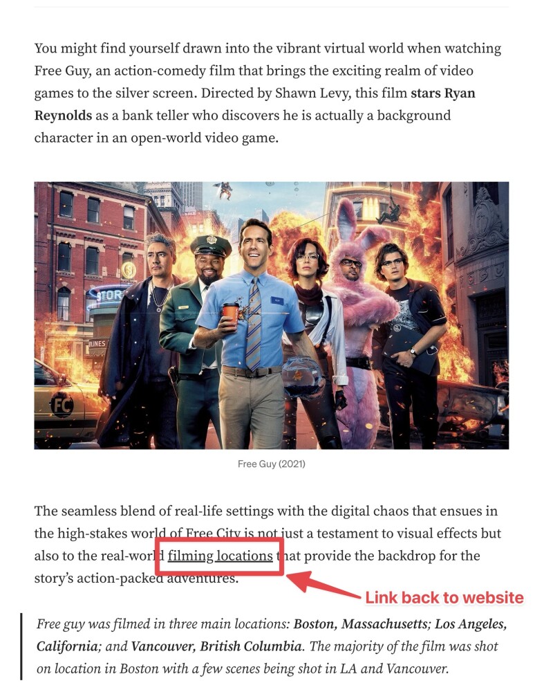 It doesn't take them to our site if we place the same article. So basically, it's all about linking our site somewhere in the blog?