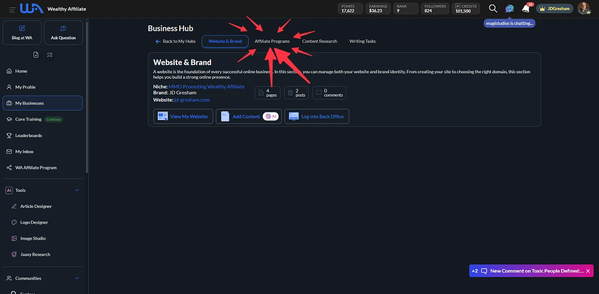 In this video, I will show you how you can easily find new affiliate opportunities using the WA My Business Hubs feature and how you can add a new category in the Revenue Opportunities section to show new affiliate programs.
