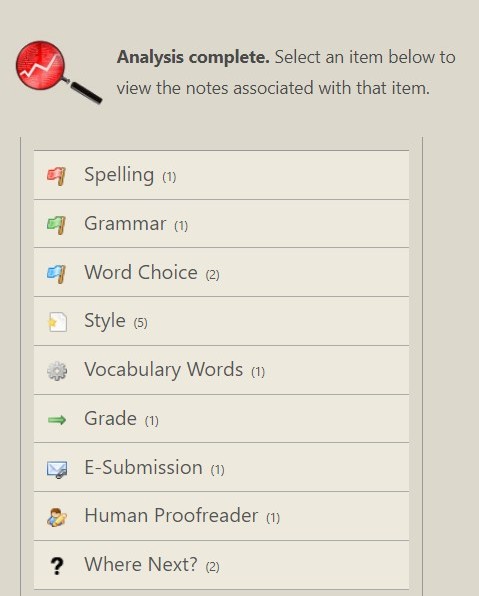 In the next window, you go through the links "Spelling," "Grammar" etc., correcting and editing your text.