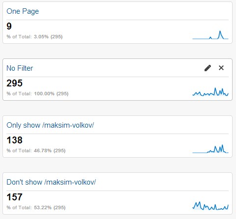 - In my example I set filter to display only pages with /maksim-volkov/ in URL, but you can set filter for individual pages