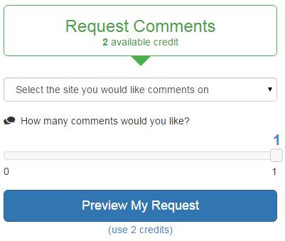 After having at least 2 credits, you can now click the "Request Comments" button, and you will be taken to a new page. There you can enter your email address and the comments. You can see a website address and even view it before you can make a complete, useful comment about it.