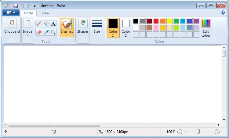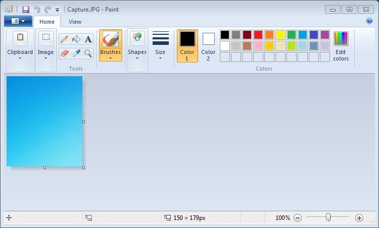 This is the new Paint Windows as shown above. Our picture is not yet in there for editing. To open the picture in Paint, click on the paste button in the Clipboard area, and then choose the "paste" from the options where you can browse for the file.