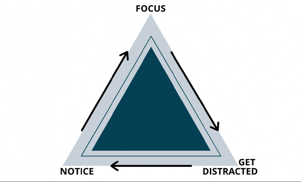 In the very moment you notice when you get distracted – you jump to the left side of the triangle because in the moment of noticing you cannot be distracted.