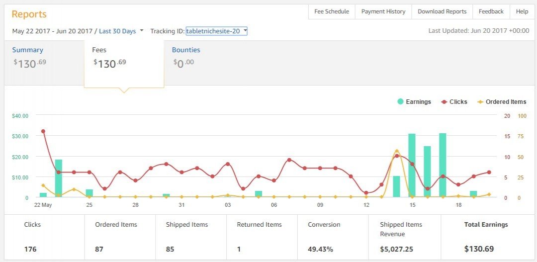 A deeper look reveals that these sales came from my tablet mini niche site (see the tabletnichesite-20 tracking ID):