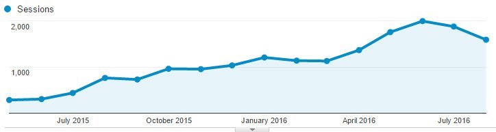 This is the monthly organic search traffic to my website Earn Money with Marcus since May 2015. Keep in mind, this includes a period of several months around the beginning of 2016 when I wasn't doing much on the site because I was focusing on another site.