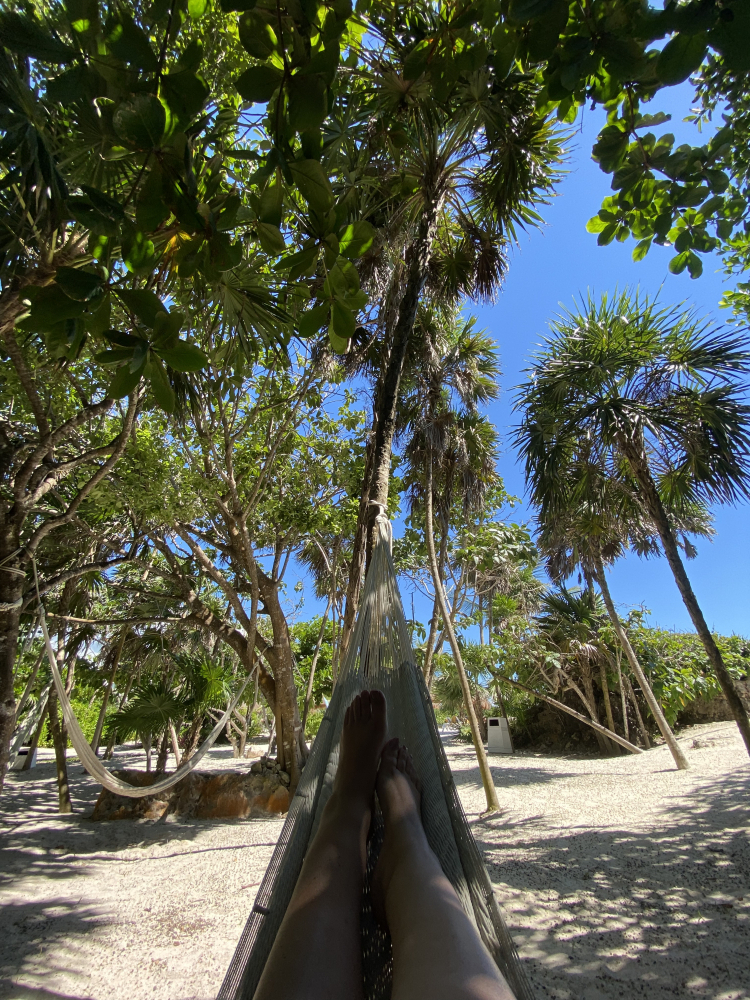 I can hear the relaxing sound of the waves crushing onto the shore of Riviera Maya🏝. It’s 32 C degrees ☀️and I’m surrounded by the shadow of beautiful Mexican tropical trees and palm trees🌴🌴🌴. There’s a lovely breeze cooling me down and my sunburn is getting better thanks to your much appreciated recommendations from yesterday’s post. 🙏