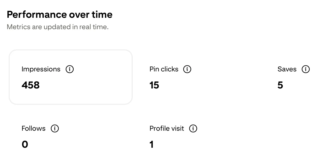 The top-performing pin gathered 456 impressions, 15 clicks, and 5 saves, not bad, right?