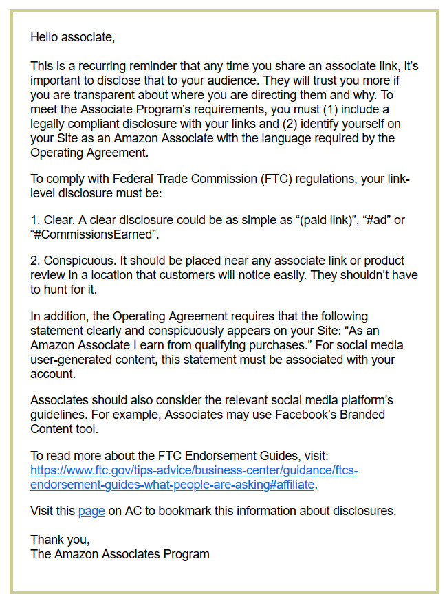Affiliate Disclosures, FTC Guidelines, and Amazon Rules