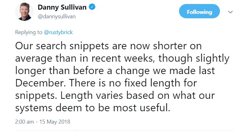 Google has back-pedalled on the length of search snippets