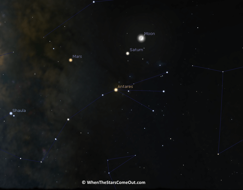 Read more here if you're interested: http://whenthestarscomeout.com/moon-saturn-mars-an... - if not, just look up, and you'll easily see 2 spectacular planets and a red supergiant!