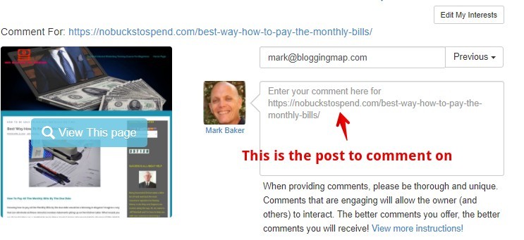 Also in the comment block you will also see the link of the post you are meant to be reading and commenting on. (See below)