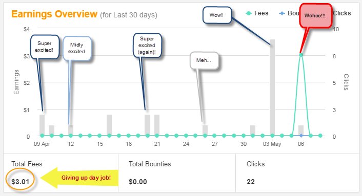 Of the 350 posts that I have written I have "upgraded" about 10 of them (it's a slow process). Today I checked the affiliate stats and saw that I had earned 2 commisions!! (Woot!)