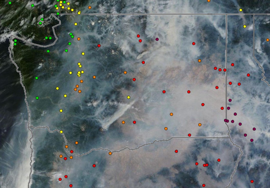 Its been at least a couple of weeks that the smoke from the BC Canada fires have been blowing into Washington State and the Pacific NW, creating the worst air quality here in the entire nation. Below is a satellite map showing the smoke filled Washington State, and surrounding areas.