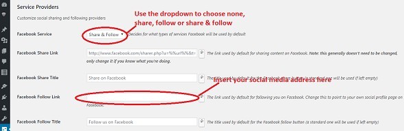 Scroll down further until you find Service Providers. Here you will be able to choose which social media that you would like share only or share & follow or none at all. I usually choose share to all of the different social medias, since the more places my articles go the better.