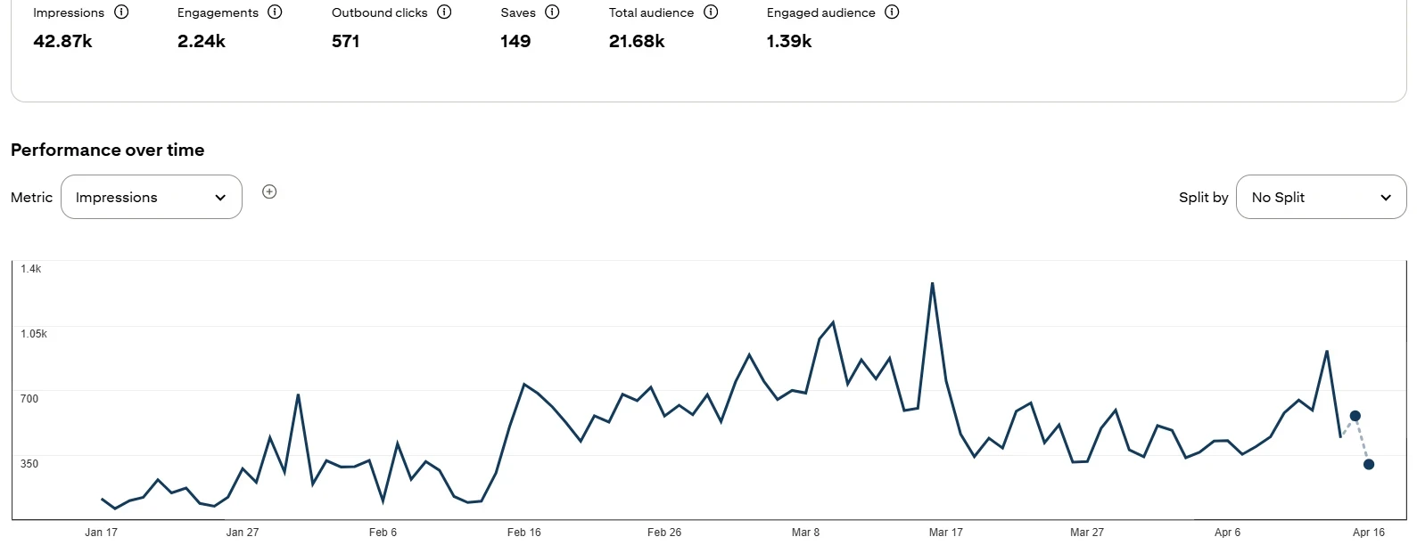 On my last update I was on a steady incline for impressions. You can read more here, but looking at this graph you can see it pretty much tanked a couple of days after my report 😭