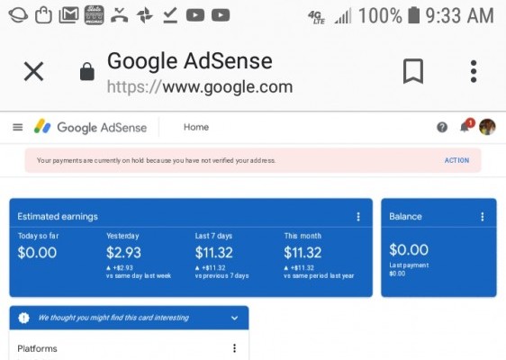 Furthermore, Google Adsense told me that I have to verify my address with a special pin number bcause my earnings are over $10.