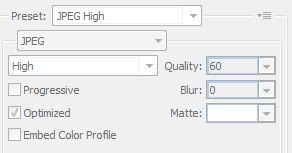 Next search for, install and activate a plugin called WP Smush.it. Under 'Media' in your Wordpress menu choose 'Bulk Smush.it' to compress all of the images that you have already uploaded to your website. This plugin will automatically smush each new image that you upload from now on. This plugin is recommended by GTMetrix however I couldn't get it working without errors so what I do is open each image in Photoshop, then re-save it using Alt+Shift+Ctrl+S before uploading to my website. Set the Preset on the top right to JPEG High and the Quality to 60.