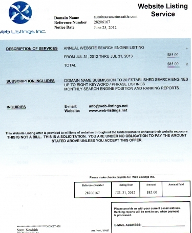 When i first got this i thought it was a bill, but then after i started reading it i knew it had black hat SEO written all over it. Like Kyle said i could charge for this type of service if i wanted too.