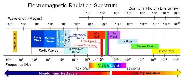 Within that spectrum, humans can only see frequencies from around 385 THZ to 750 THZ. That's a TINY part of the elecromagnetic spectrum.