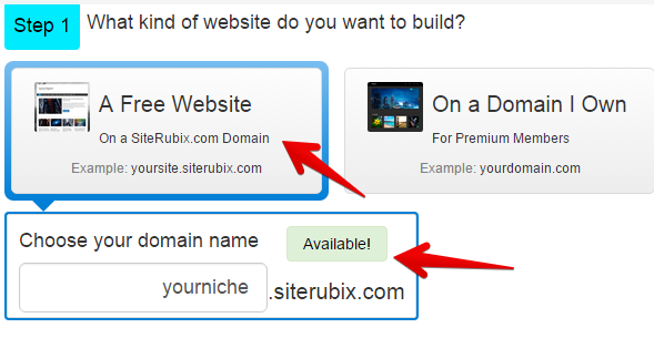 Click on "A Free Website" and a box will come up where you will type in your domain name, which will have something be relevant to whatever niche you have chosen. It will say available if nobody else is using it.