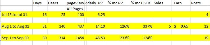 Here are my stats after 2.5 months. Overall, all numbers are climbing but I have to be patient as I know these are early days. My users grew from aug to sep from 140 to 314.