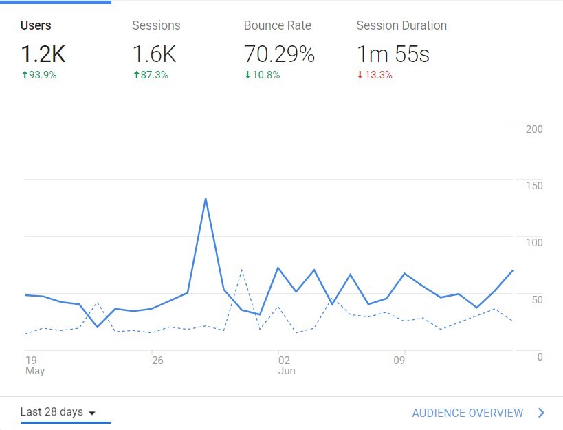 Below is a screenshot of my Google Analytics today that my traffic growth is nearly a 100% in 28 days alone.