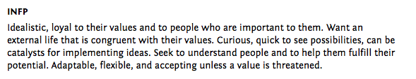 Take a free version of the MBTI here if you’re interested to find out your type: