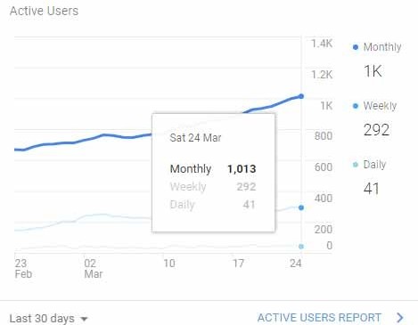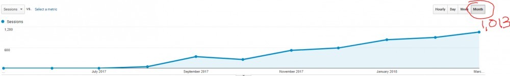 - Traffic has been growing steadily now all the way up to that illusive 1K per month as of today, March 25, 2018!