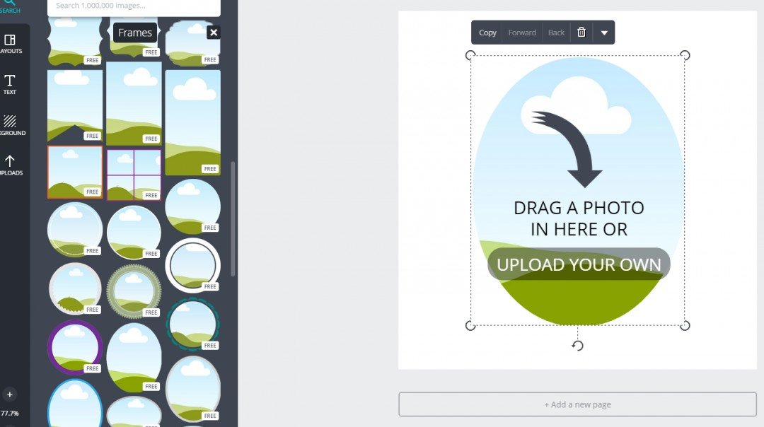 Click on Frames. Once the frames open, choose the frame style you want. All of the frame styles are free. After you have chosen a frame. Here is what your screen will look like after you pick a frame