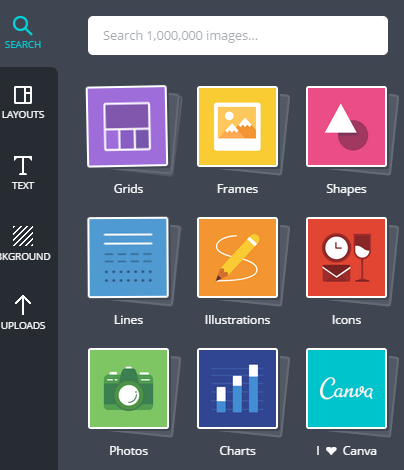 Click on Uploads. You can upload your pictures from your computer, Facebook, or Google drive. Upload the picture you want to use. Once uploaded drag to canvas.