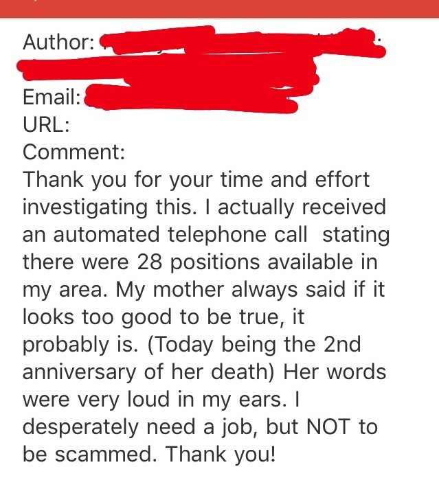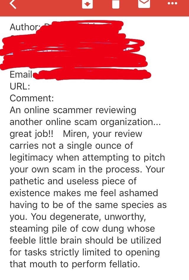 In fact, I remember some months ago I received some comments from other trolls calling me a scammer, but they were shorter than this one.