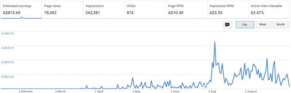 Google AdSense Report Between 1st February 2019 - 31st August 2019