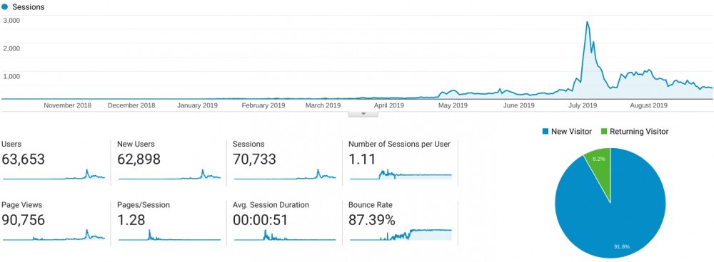 Google Analytics Traffic Stats Between 1st October 2018 - 31st August 2019