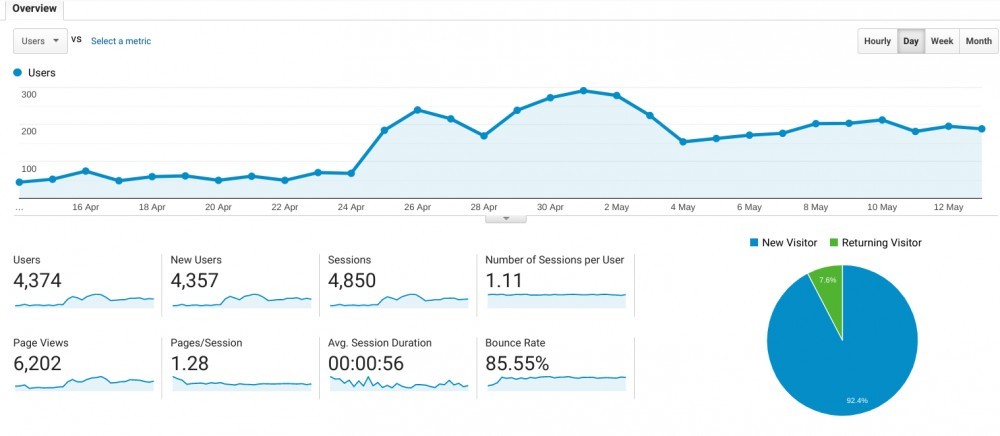 I go from a rough average of 50 clicks to 200 clicks per day. With a spike of 298 as the best day. Of course, I need to take into consideration that some of the recent posts have to marinate a little to find its position within the SERP's.