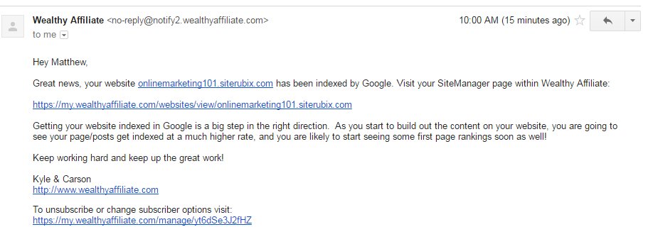 So, I received this email this morning and was happy to see that my website has been indexed on google. I suppose I should do some reading and refreshing - but I just wanted to share this small accomplishment today and let my fellow newbies know that it may not happen over night, but I've been on WA as a premium member since late July and I have already received notification of my website being indexed by google.