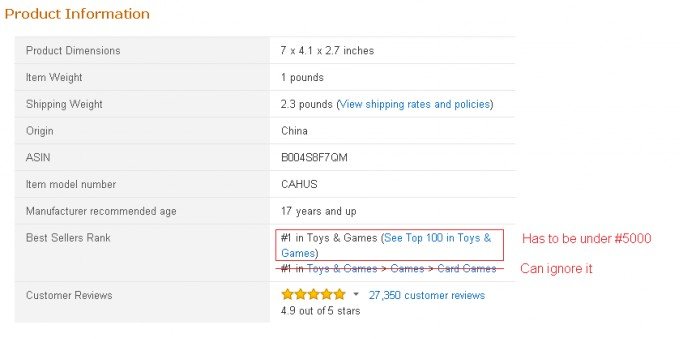 Second Criteria: Amazon Best Sellers Ranking in the top 5000 products of the top level category
