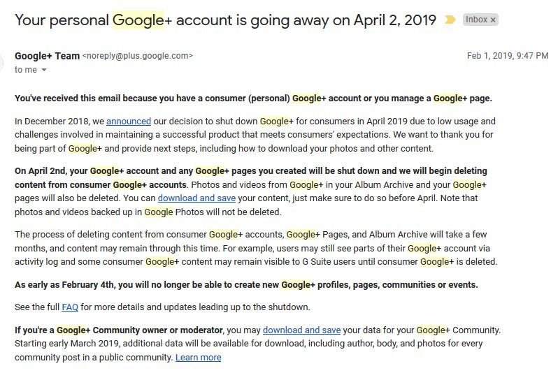 Just last Friday, I received email from Google + team that Google Plus is officially closing this April. This just proved that the comment I received is true. I assumed most of you has received the same notice from Google.