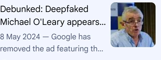 Heads Up, Deepfake paid ad with Michael O'Leary on Youtube DO NOT CLICK