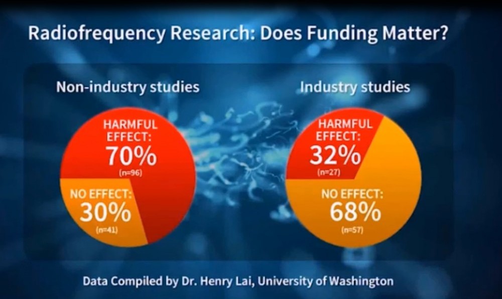 When it comes to making a decision the 'weight' of studies is taken into consideration so it is very easy for any industry to flood the market with paid-for studies done very shoddily to get biased results. We have Henry Lai of the University of Washington exposing that in the case of RF radiation 30% of industry-funded studies find it causes harm but 70% of independent studies find harm. And Joel Moskowitz of UC Berkeley shows how funded studies usually don't follow scientific best practice, they fall apart easily but no one is looking closely in the governments, they rely on industry to tell them what's what and that is how tobacco science only finally got defeated in 2006.