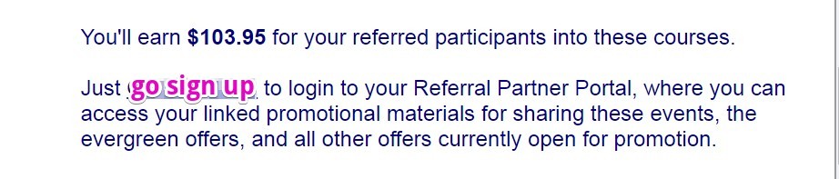 So today I got an email from an affiliate platform advertising $103.95 per referral to their courses. COMMISSION PER VISITOR WHO CLICKS AND BUYS!