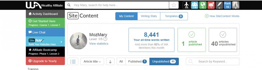 A really informative post, Mary thank you, I was just looking at site content yesterday it is a very powerful resource that has been added to our membership and one like you say that we can really benefit from I am liking the aspect whereby we can set targets for ourselves. Definitely looking at making September the month to crank out more content, thank you for the motivation, enthusiasm is infectious.