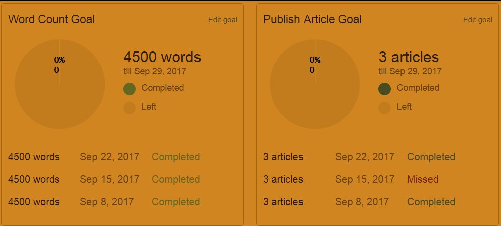There's still one week of my September challenge left and I've already achieved my goal of creating the habit of consistent publishing to one particular site, my health niche site. Once the goals are typed into the SiteContent dashboard our internal clocks start ticking too and the motivation is phenomenal to meet those targets. I've explained in previous posts why I did not set a huge target, just something to develop the habit and something that is reasonable for long term consistent content.