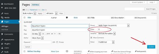 Now all you need to do is assign your order to this page, remember the bigger the number, the lower down the list it will appear.