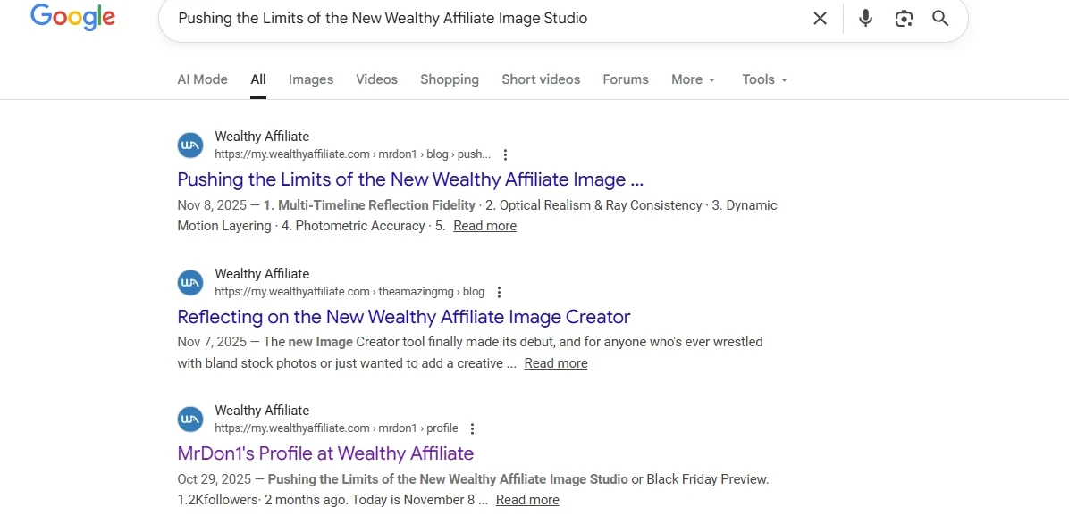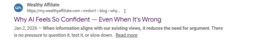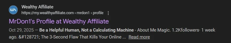 Google used to keep up with Wealthy Affiliate. Posts were indexed within a couple of days. But if you have read my posts, you know that Google is swamped by the influx of AI Content. Today's check shows that Google is running about ten days behind.